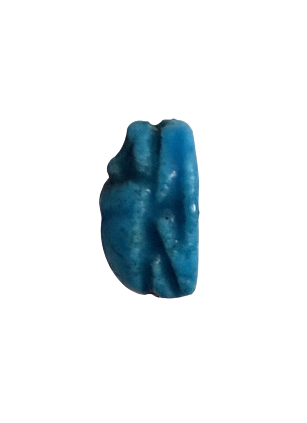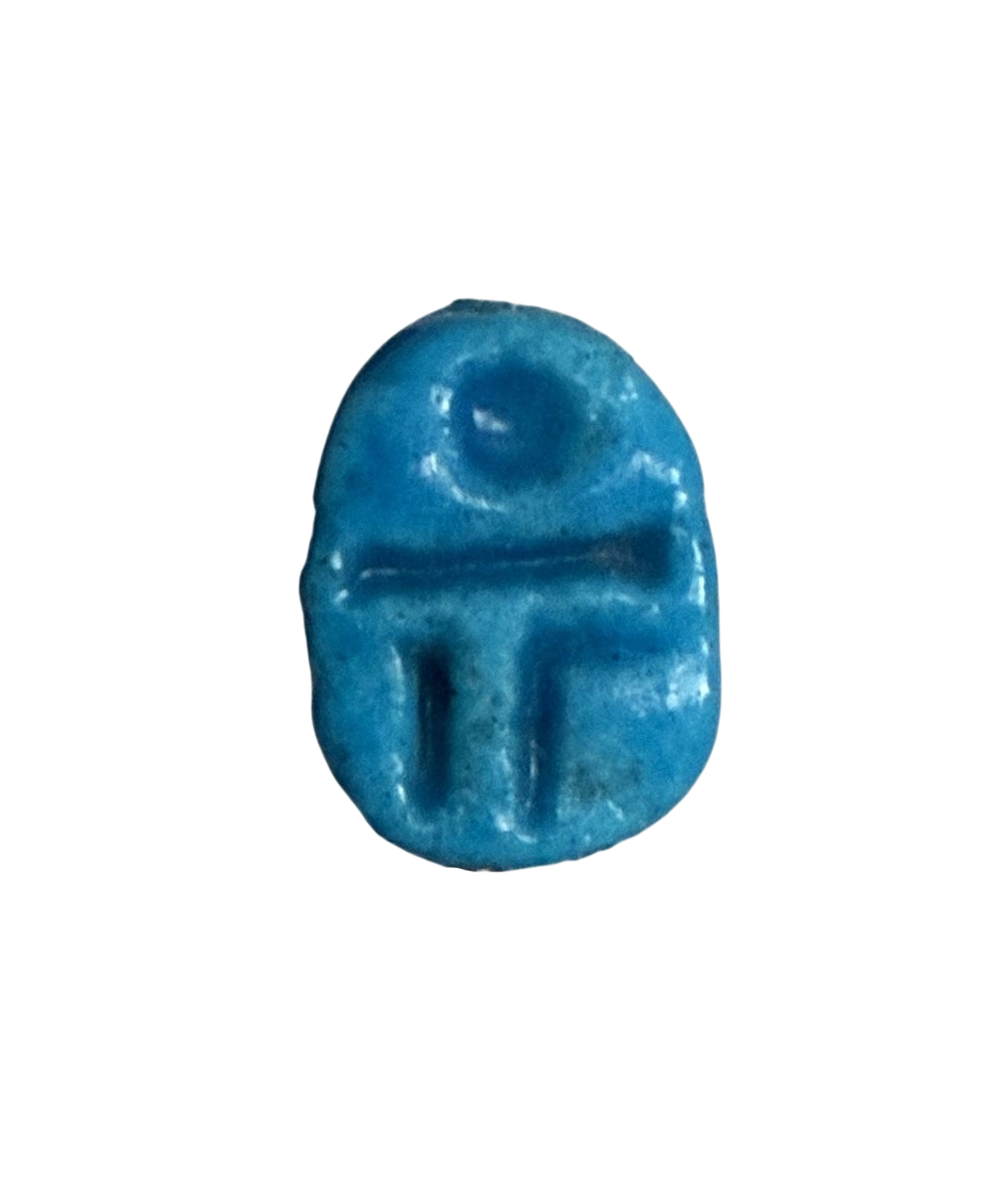 This small bright blue faience scarab reads: ra mn(w) nTr nfr, which means 'Ra is eternal, the good god'.