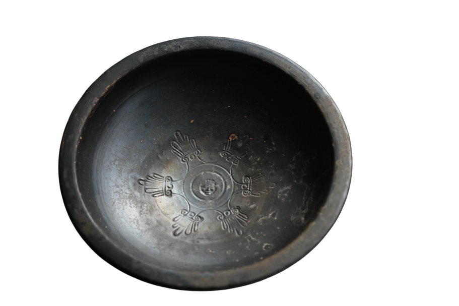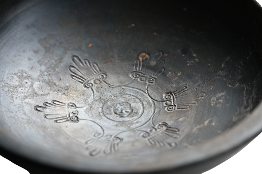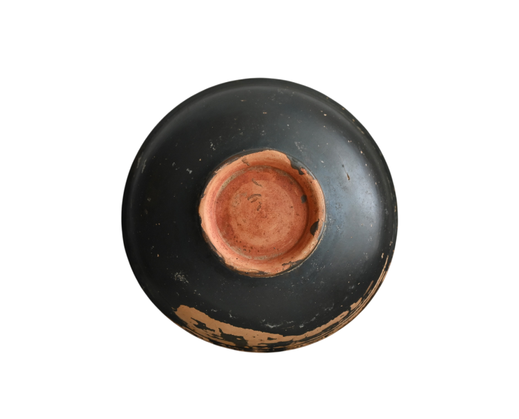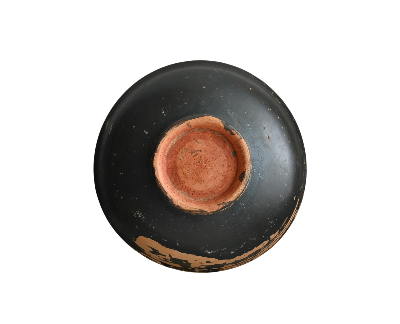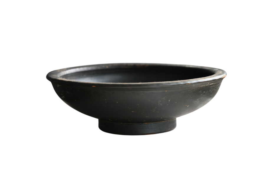 The black glaze is not paint but a ceramic slip (refined clay suspension) that turns glossy black when fired under controlled conditions in a three-phase kiln process.
