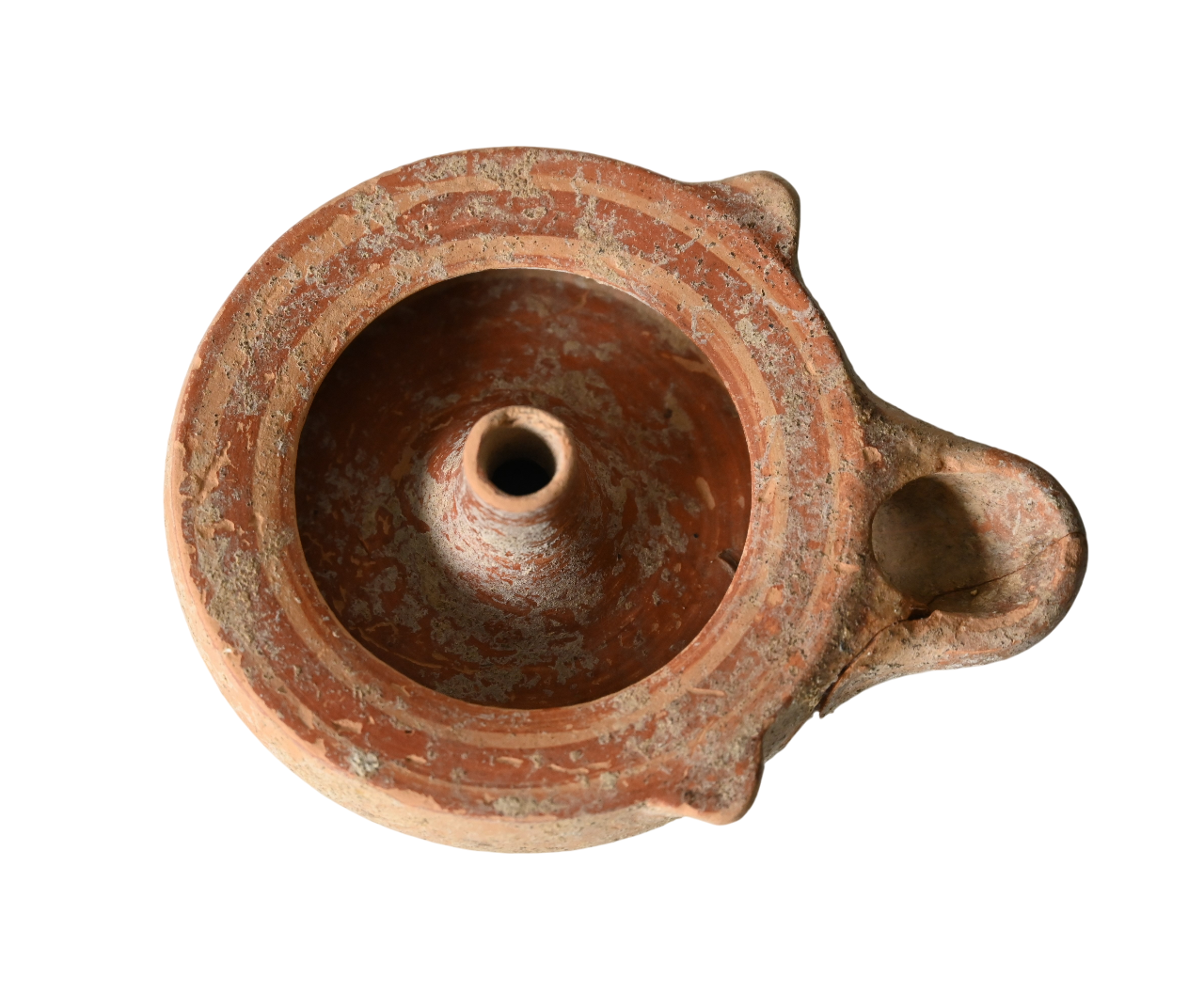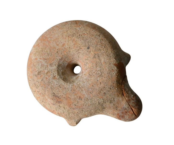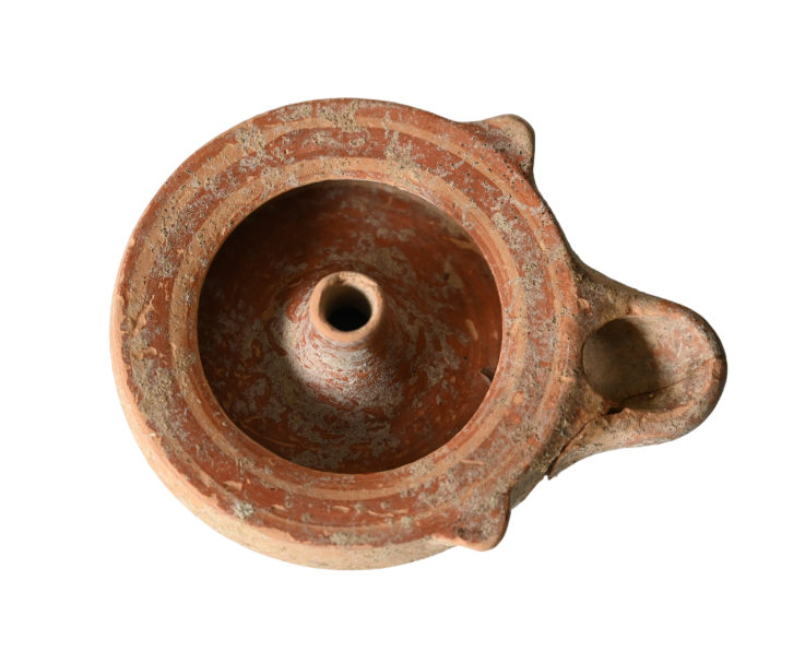 Either a Howland Type 12A or 19A Greek oil lamp. Richard Hubbard Howland developed a refined typology for Greek lamps found within the ancient Greek city of Athens. (Howland 1958).