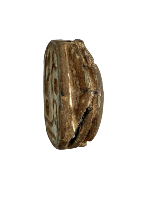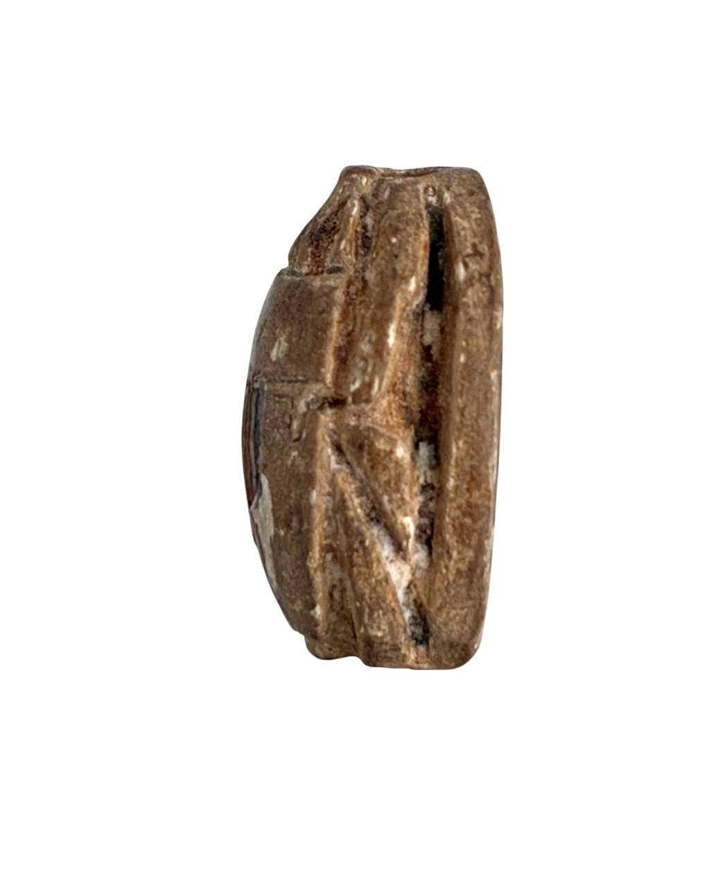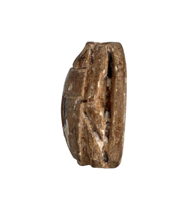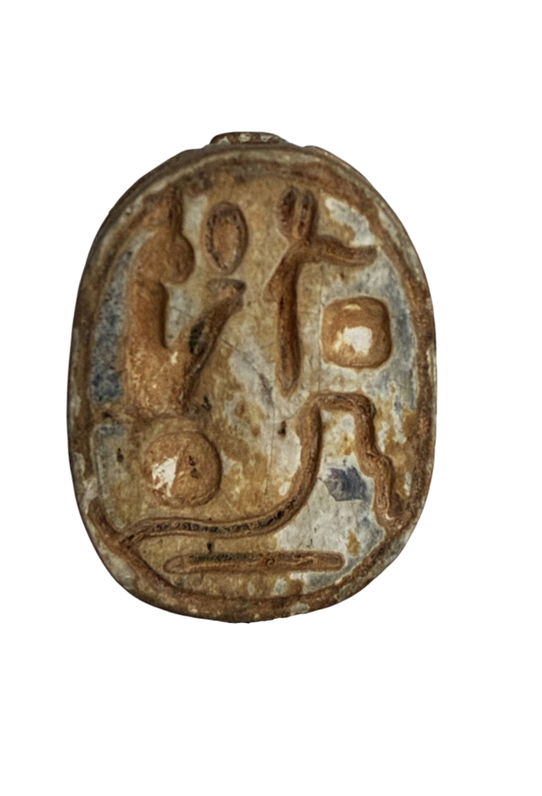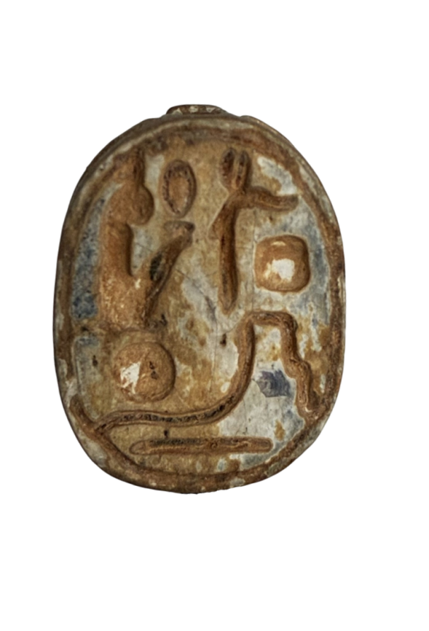 Scarabs were worn as jewelry, carried as talismans, and placed in tombs. They were believed to protect the living from harm and guide the dead safely into the afterlife. Many scarabs were inscribed with names of pharaohs, prayers, or protective spells. Officials used them as personal seals pressed into clay or wax. Some had purely decorative or symbolic inscriptions, while others carried political or diplomatic messages. They were made from a wide range of substances: steatite (soapstone), faience (glazed ceramic), carnelian, lapis lazuli, and even precious metals.